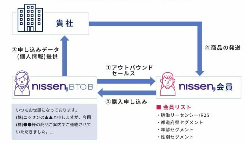 | ご提案:プロモーション支援 当時の課題 ・新規会員の獲得 ・デジタルでの獲得鈍化 ニッセンサービスのご利用のポイント ・目標CPOの達成 ・高い継続率 ・担当営業からの提案 |