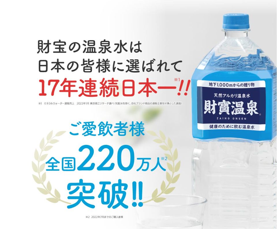 桜島のエネルギーをたっぷりと蓄えた財寶温泉は、天然のミネラル成分を含んだ天然ミネラルウォーターです。