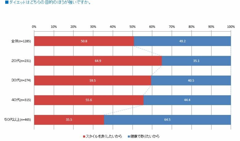 どの年代もダイエットには興味があるものの目的が少しずつ違っていることがわかりました。