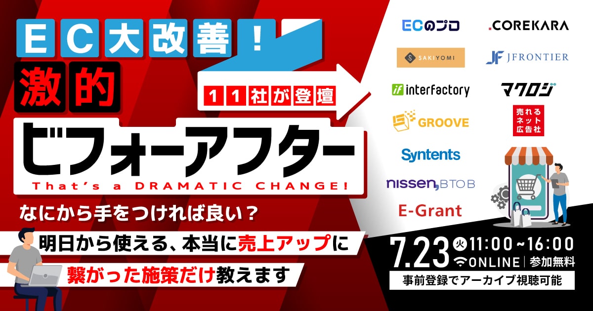 そこで本セミナーは、【EC大改善!激的ビフォーアフター】と題しまして、