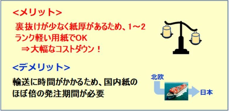 ③国内紙と輸入紙の主なメリット、デメリット