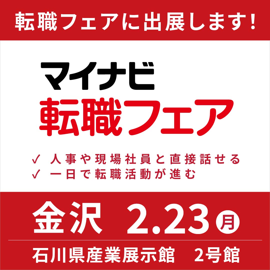 2月23日(月)、石川県産業展示館で開催される「マイナビ転職フェア 金沢」に、当社も出展いたします!