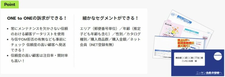 ●ⅮM代行 ・・・・・約3,000万人以上のニッセン会員様の属性からセグメンテーション