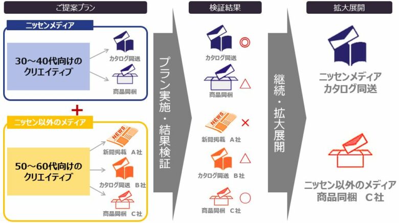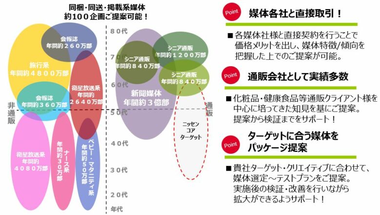 またニッセンは代理店機能もあり、約百媒体もの媒体を扱っており、様々なご提案が可能でございます。