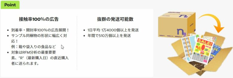 ●商品同梱・・・・・商品を発送する際に、貴社広告物を一緒にお届けします。