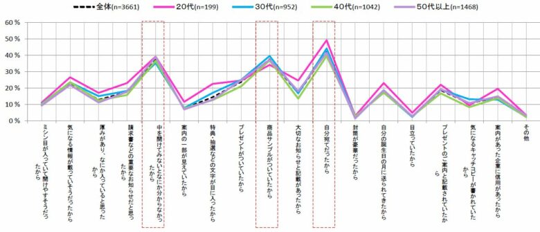 二通りの内容がDM開封のきっかけとして高い傾向がみられました。