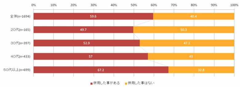 その傾向は年代が高くなるほど、併用利用率が高くなる傾向がみられた。