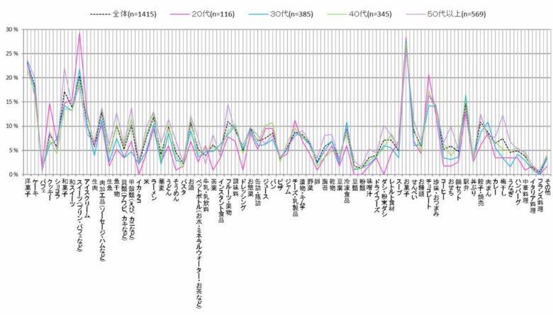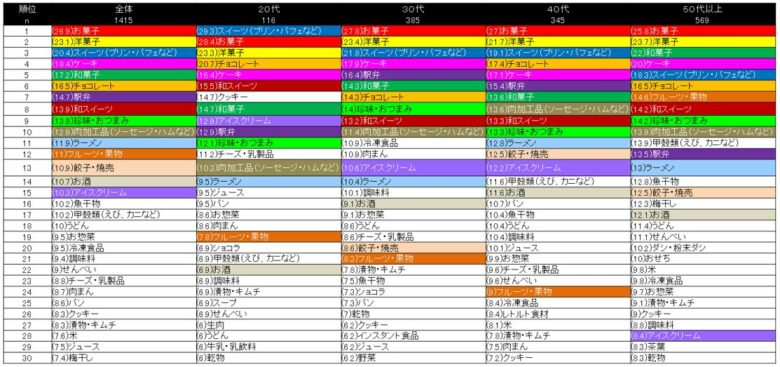 グルメ食品 年代別・購入商品 (ランキング 1位~30位)