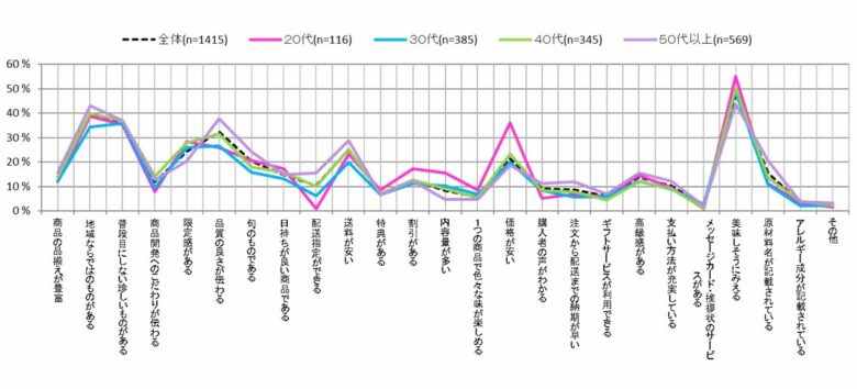 Q2.グルメ食品を選ぶ際には、どのような事を重視しましたか。あてはまるものを全てお選びください。(複数回答可)