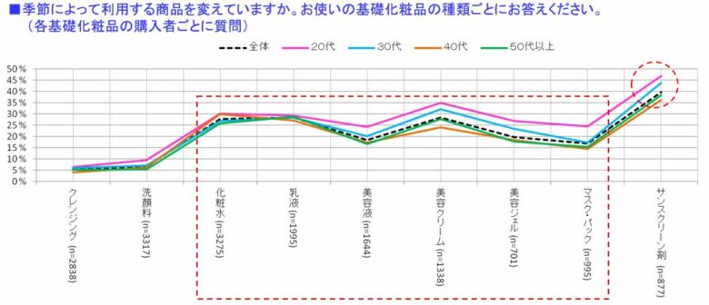 サンスクリーン剤については、「夏」に利用する商品を変える割合が特に高い傾向が見られた。
