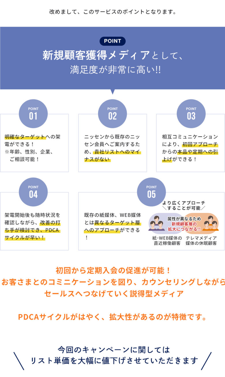 電話メディアでのアウトバウンドで定期獲得。