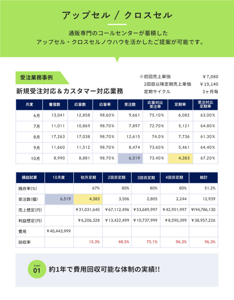 応答率改善・アップセル・クロスセル・定期解約抑止