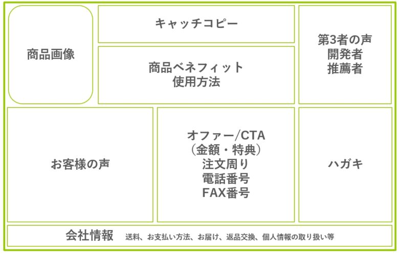 では実際に、通販チラシの裏面には何を掲載すべきか具体的に見ていくことにしましょう。