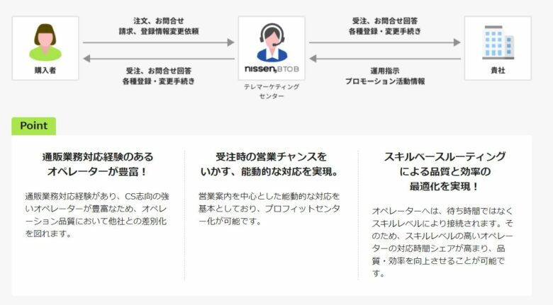 ニッセンBtoBは、約20年にわたり主にダイレクトマーケティング事業社に対して、自社で通販を行ってきたノウハウ、インフラをご活用頂くことで、クライアントの課題を解決してまいりました。