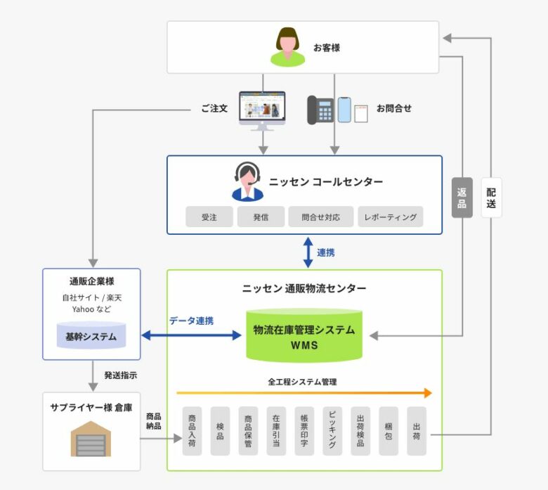 通販ビジネスにおける物流・システム業務のアウトソーシングを支援します。